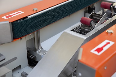 7、下部的膠帶作業(yè),在側面輸送帶驅動下通過機器,有膠帶分割器迅速簡便地貼上膠帶。